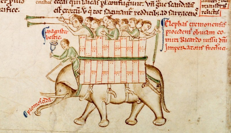 L'elefante di Cremona, che trascinò il Carroccio (e lo sfortunato Pietro Tiepolo) in trionfo a seguito della battaglia di Cortenuova - Wikimedia