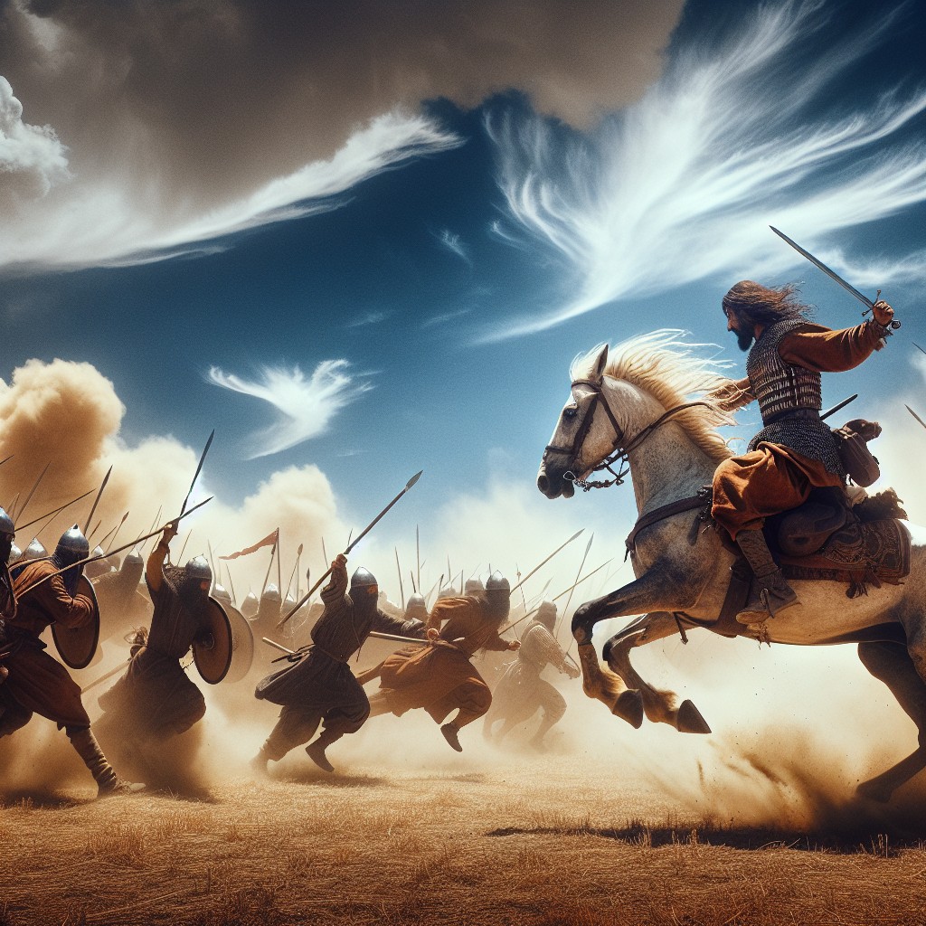 Guglielmo combatte da solo contro i Saraceni. - Immagine generata con IA