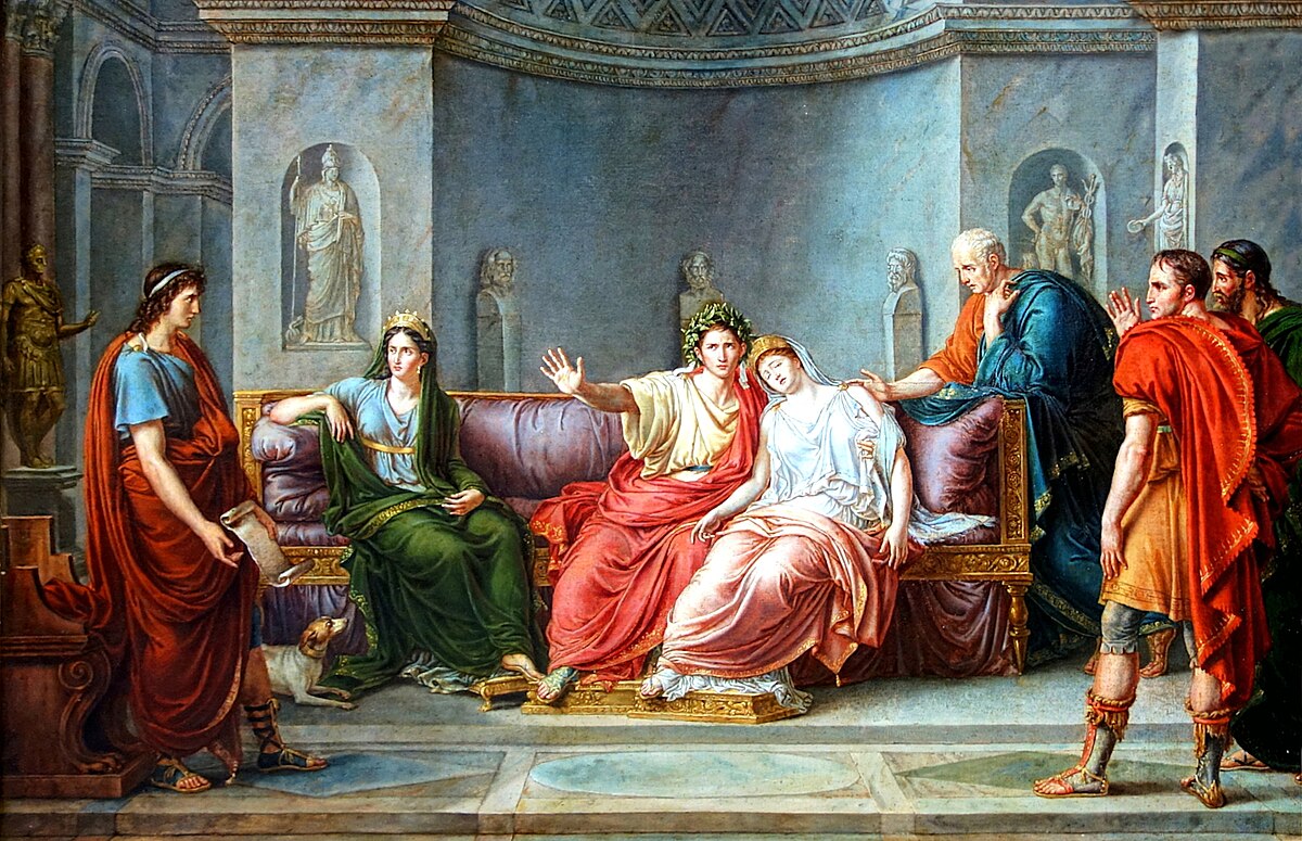 Dipinto di fine '700 di Jean Baptiste Wicar (1762-1834) raffigurante Ottaviano Augusto e sua moglie Livia Drusilla mentre ascoltano la lettura dell'Eneide di Virgilio. - Commons Wikimedia