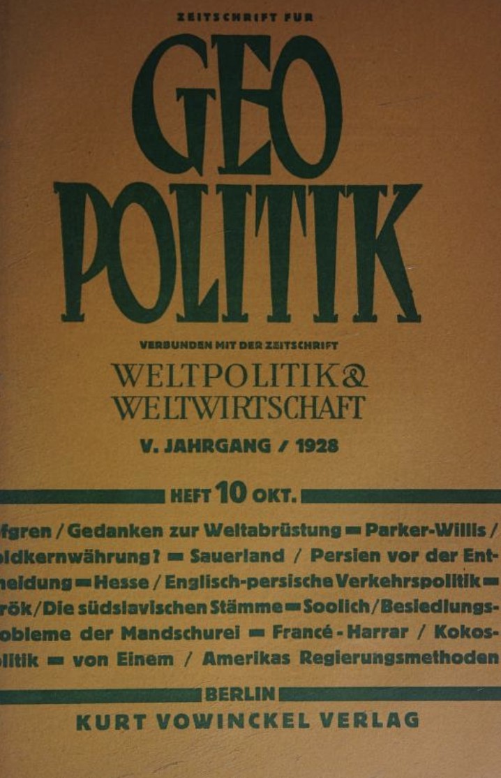 La copertina di un numero della Zeitschrift für Geopolitik, ad oggi interamente scansionata e disponibile gratuitamente su Internet Archive.