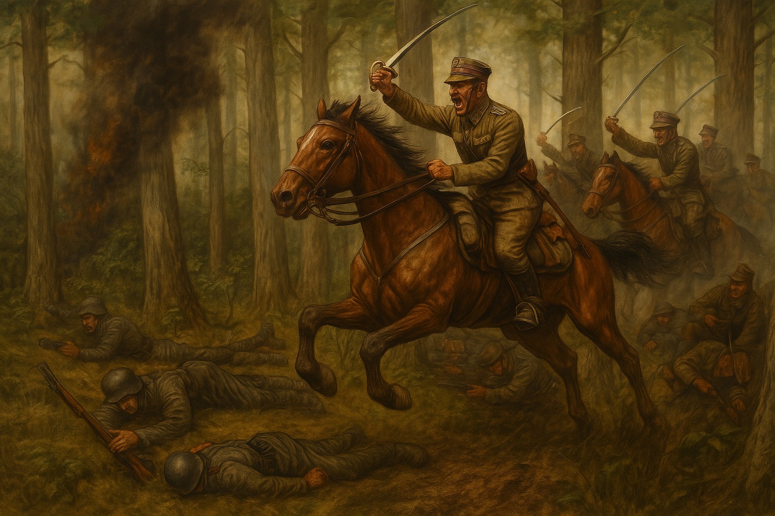 September 1939: the Polish cavalry never charged the German tanks. What went down in history as a 'suicide charge' was actually a brilliant manoeuvre against the infantry, later manipulated by Nazi propaganda to portray Poland as a backward country. A legend created by Nazi propaganda and destined to become a widespread myth. - Image generated with AI