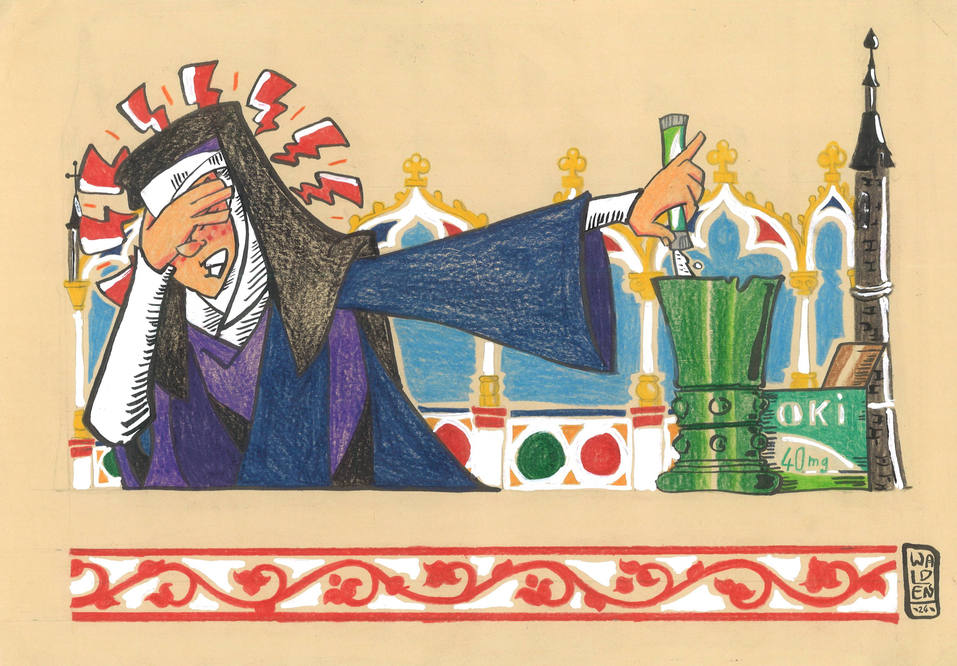 Hildegarde Von Bingen, 240x340 mm, ink and colored pencils. Illustration by Giovanni Almici.